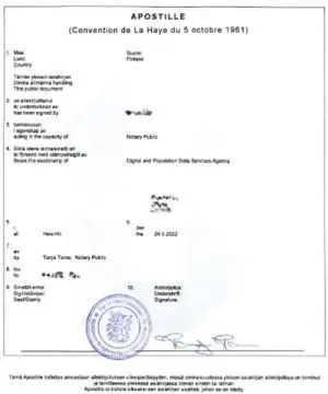Apostilles from the Digital and Population Data Services Agency are obtained on Finnish documents in 1 - 2 business days