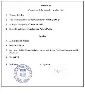 Apostille Stamps in Sweden can be obtained to authenticate official Swedish documents such as Population Register Certificates, Criminal Record Extracts, University diplomas and transcripts, and documents certified by a Swedish Notary (including powers of attorney and affidavits).